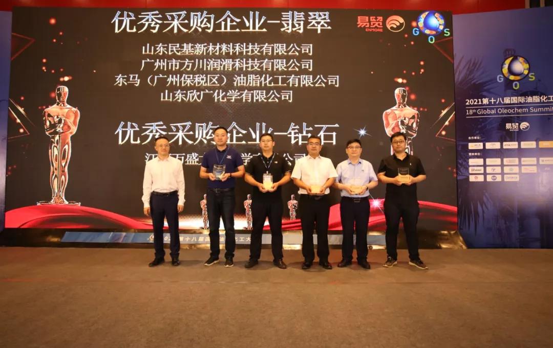 2021年7月14日-16日,(第十八屆)國際油脂化工大會(huì)在青島召開。此次大會(huì)中,方川潤滑總經(jīng)理徐立庶先生以最高票數(shù)榮獲“2021油脂化工風(fēng)云人物獎(jiǎng)”,方川潤滑榮獲“優(yōu)秀采購企業(yè)翡翠獎(jiǎng)”。