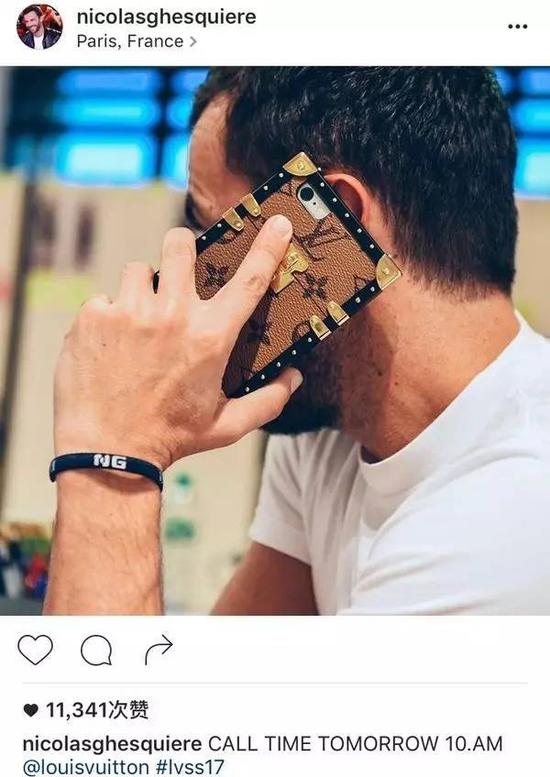 在大秀開始前,LV的創(chuàng)意總監(jiān)Nicolas Ghesquière早就迫不及待地在個人的ins上提前公布了這一單品。圖中的手機殼Monogram花紋,外形像小箱子Petite Malle。